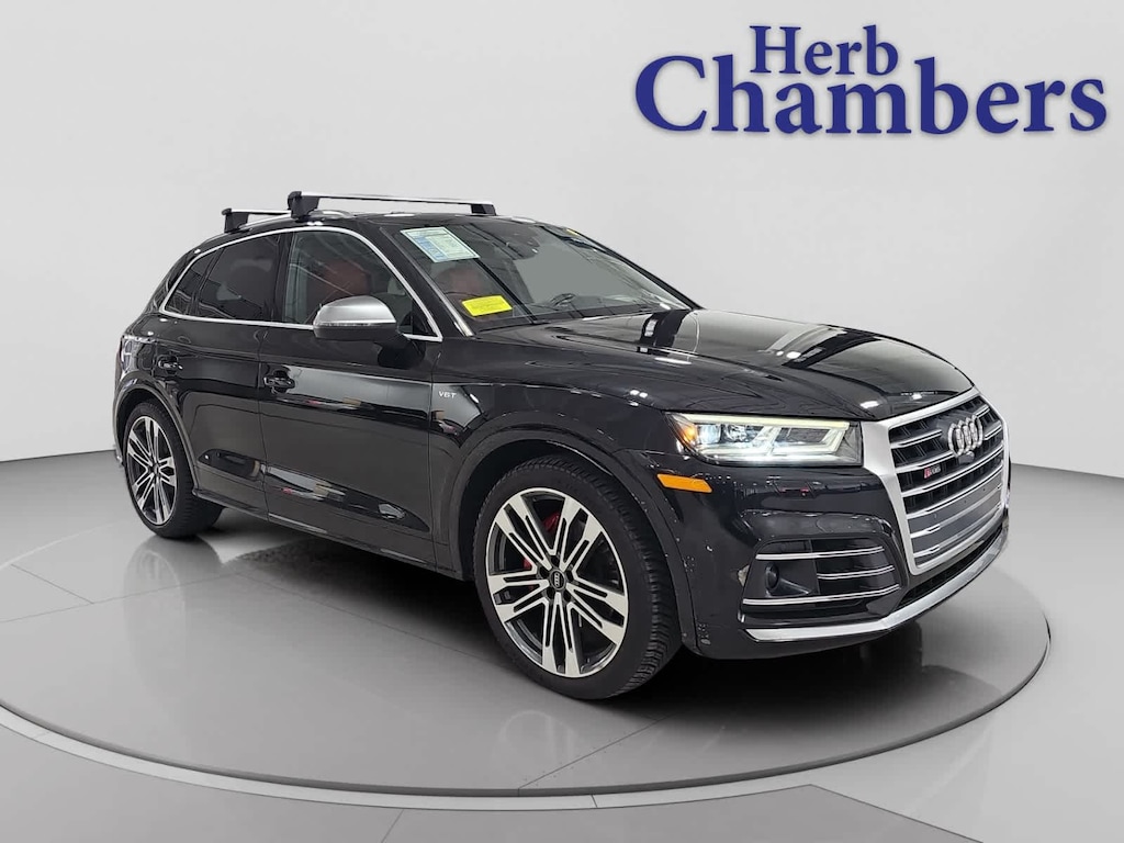 Leather Seats, Navigation, Sunroof, Panoramic Roof, All Wheel Drive, Power Liftgate, Rear Air, Heated Driver Seat, Premium Sound System, Satellite Radio, iPod/MP3 Input, Onboard Communications System, Aluminum Wheels, Keyless Start, Dual Zone A/C Rear Spoiler, MP3 Player, Keyless Entry, Remote Trunk Release, Privacy Glass. Audi Prestige with Mythos Black Metallic exterior and Magma Red interior features a V6 Cylinder Engine with 354 HP at 5400 RPM*. 5-Day 100% Money Back Guarantee / 30-Day 1,500 Mile Vehicle Exchange and, A complete Vehicle Portfolio & CarFax. Visit www.herbchamberssmartpricing.com for complete details. Only a Herb Chambers SMART Pricing Pre-Owned vehicle receives a Multi-Point Inspection Was $19,998. This SQ5 is priced $1,200 below Kelley Blue Book.