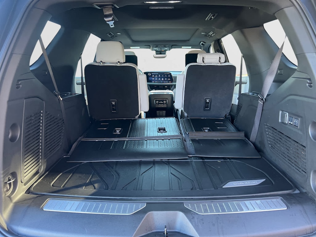 TECHNOLOGY AND ENTERTAINMENT PACKAGE includes (CWM) Technology Package content and (UW9) Rear Seat Media System (Also includes (C3U) power sunroof. LPO, 22" (55.9 CM) MULTI-SPOKE GLOSS BLACK WHEELS LPO wheels will come with 4 steel 22" wheels from the factory with alignment specs set to 22" LPO wheel selected (dealer-installed) Includes wheel locks and not (SFE) wheel locks, LPO. LPO, PREMIUM LINER PROTECTION PACKAGE includes (AAK) 1st and 2nd row premium floor liners, LPO, (RIB) 3rd row all-weather floor liner, LPO and (CAV) all-weather cargo mat, LPO (dealer-installed), TECHNOLOGY PACKAGE Includes (NWM) Advanced Security Package content, (DRZ) Rear Camera Mirror, (UV6) Head-Up Display and (TCP) AutoSense power liftgate.), ENGINE, 5.3L ECOTEC3 V8 with Dynamic Fuel Management, Direct Injection and Variable Valve Timing, includes aluminum block construction (355 hp [265 kW] @ 5600 rpm, 383 lb-ft of torque [518 Nm] @ 4100 rpm) (STD), TRANSMISSION, 10-SPEED AUTOMATIC electronically controlled with overdrive, includes Traction Select System including tow/haul (STD), ADVANCED SECURITY PACKAGE includes (UTR) self-powered horn, (UTV) interior movement sensors, (UTU) vehicle inclination sensors, (UTW) glass break sensors in rear quarter glass and liftgate window and door and liftgate lock shields, AUDIO SYSTEM, 17.7" DIAGONAL ADVANCED COLOR LCD DISPLAY with Google built-in compatibility (select service plan required, terms and limitations apply), including navigation capability, connected apps, personalized profiles for each driver's settings, Natural Voice Recognition and Phone Integration (STD).